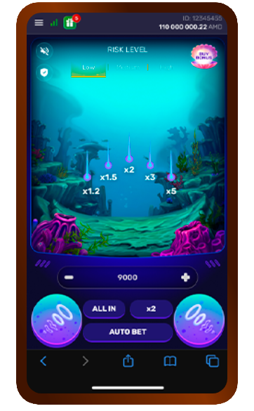 Игроки отправляются в эпическое подводное приключение, стратегически делая ставки на появление колец из фиолетовых кораллов, чтобы обеспечить себе победу, нанизывая их на шесты и открывая спрятанные сокровища.