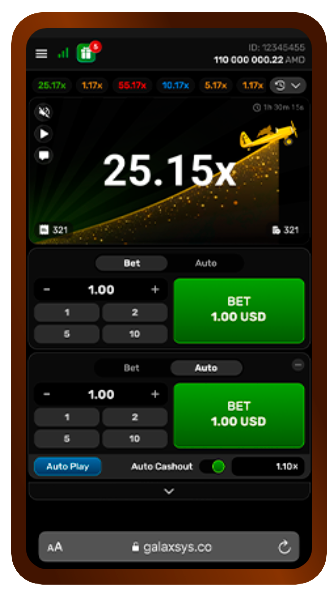 Aviashow превращает классическую игру в авиакатастрофу в захватывающее соревнование над облаками. По мере взлета самолета множители увеличиваются в реальном времени без верхнего предела, вознаграждая тех, кто осмеливается подождать, и наказывая за промедление, когда самолет исчезает. Игроки могут делать две одновременные ставки за раунд, делить выигрыш с возможностью вывода 50% или автоматизировать свою стратегию для быстрых сессий. Простой интерфейс, плавная работа и прозрачные уведомления о выигрыше делают Aviashow надежным и востребованным среди любителей авиакатастроф игровым процессом.
