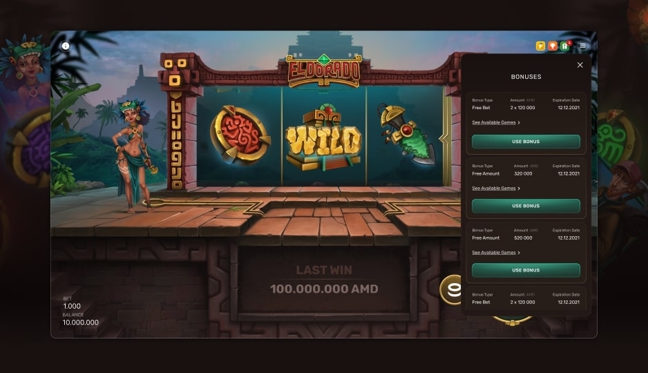 В игре El Dorado есть бонусный раунд с высокими множителями, позволяющий игрокам значительно увеличить свой выигрыш.