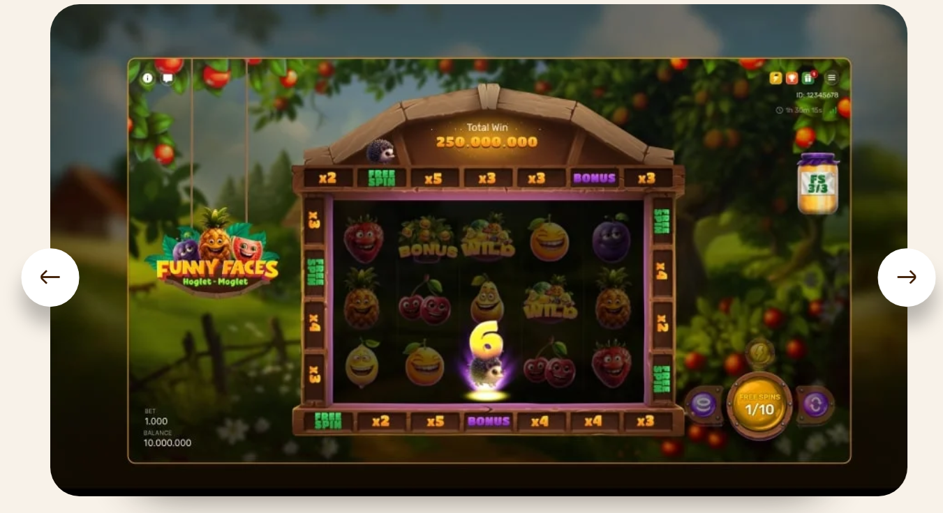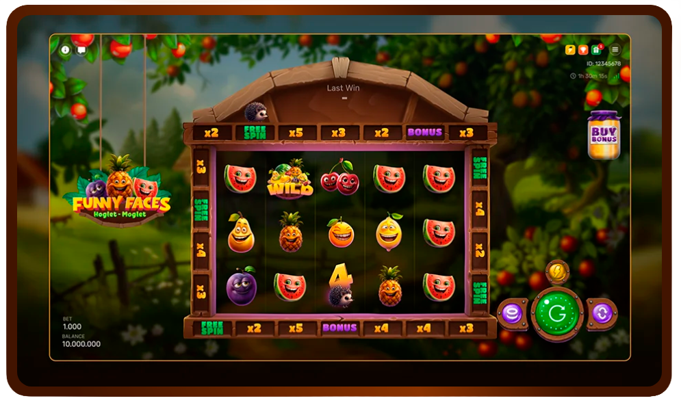 Funny Faces: Hoglet-Moglet — это игровой автомат с уникальной особенностью. После каждой ставки у игроков есть шанс получить специальный символ в виде игральной кости в форме хоглета, который запускает дополнительный ход по дорожке, опоясывающей игровое поле. Игривая тематика и динамичная анимация создают интерактивное приключение, не давая оторваться от игры.