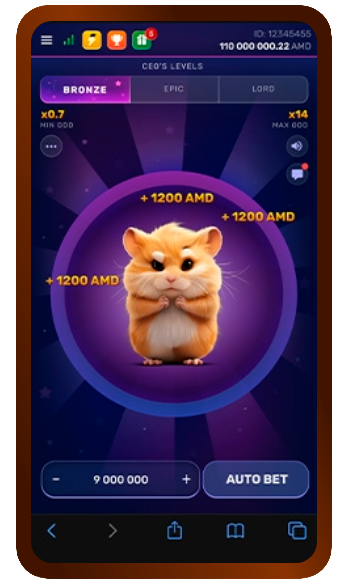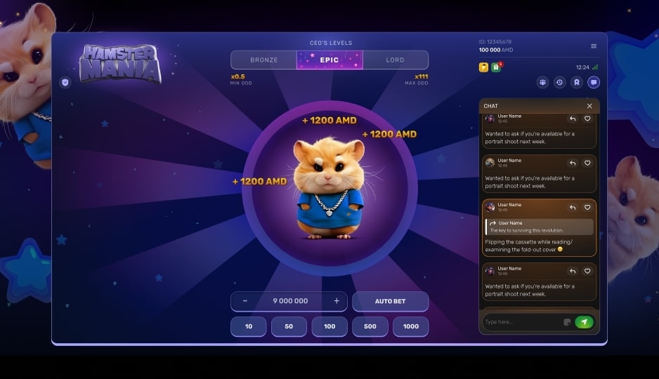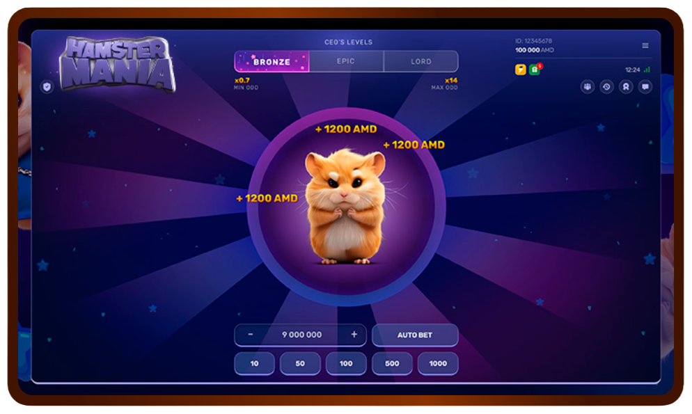 Игра исключительно проста в освоении и очень увлекательна: игроки без труда делают ставки, просто нажимая на хомячка.