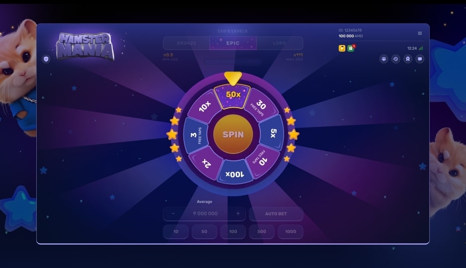 В игре Hamster Mania игроки стремятся выиграть, нажимая на изображение хомячка на экране. В отличие от традиционных турбо-игр, игроки делают ставки, нажимая непосредственно на хомячка, и мгновенно получают выигрыш. Игра предлагает различные уровни сложности, которые влияют на риск и потенциальные вознаграждения.