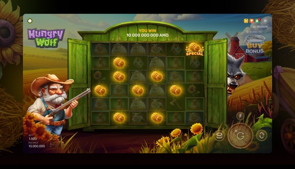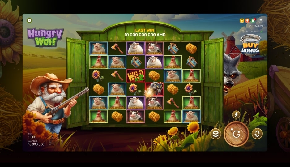 Hungry Wolf — это динамичный каскадный слот 6x6, сочетающий в себе лесные приключения и взрывную современную механику. Игроки выигрывают, составляя комбинации из 6 или более одинаковых символов, которые запускают каскады, открывающие новые комбинации. Настоящий азарт начинается, когда на игровом поле появляется Волк, уворачивающийся от выстрелов Фермера и оставляющий за собой символы Wild, или, если он попадает под удар, запускающий бонусную игру с 10 бесплатными вращениями и прогрессивными множителями до x32. Благодаря захватывающим противостояниям, специальным символам, удаляющим символы с низкой стоимостью, и возможности приобрести прямой доступ к бонусу, Hungry Wolf предлагает динамичный игровой процесс, мощные награды и незабываемые впечатления с каждым вращением.